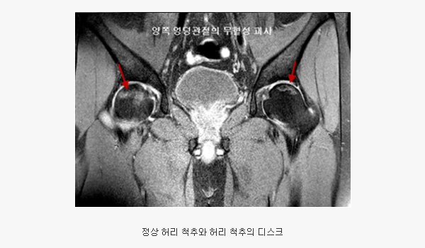 충돌증후군과 대퇴골두의 무혈성괴사 모두 MR로 진단할 수 있는 질환이며 이외의 진단방법으로는 확진하기 어렵습니다.